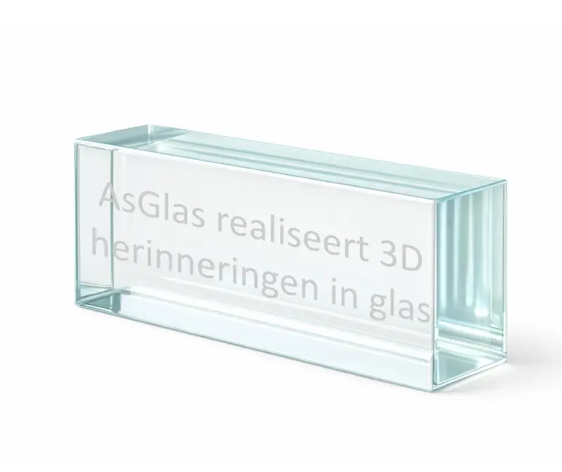 Gravures worden inwendig in het kristal gemaakt, waardoor een diepe, driedimensionale uitstraling ontstaat